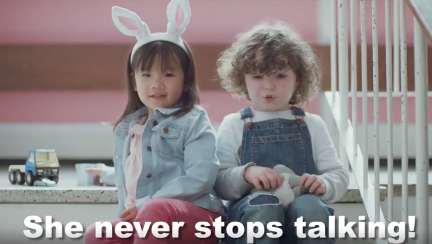 And a pair of identically dressed boys struggle the entire length of the ad to come up with an answer to the question.