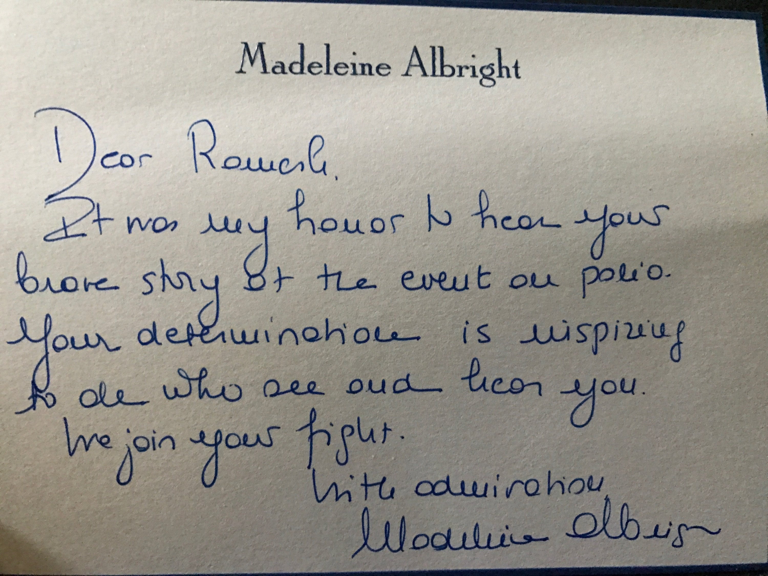 As a surprise bonus, I also received this awesome thank you note from a very special VIP in attendance — United States Former Secretary of State Madeleine Albright!