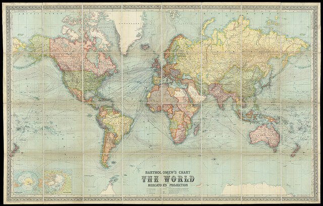 Most might recognize the old world map from faded school textbooks. It’s called the Mercator projection. In 1569, Gerardus Mercator built a whole world drawn along colonial lines — literally. Every straight squiggle between continents depicts a shipping route for trade, with the biggest economic powers given the space on paper to flex their border biceps.