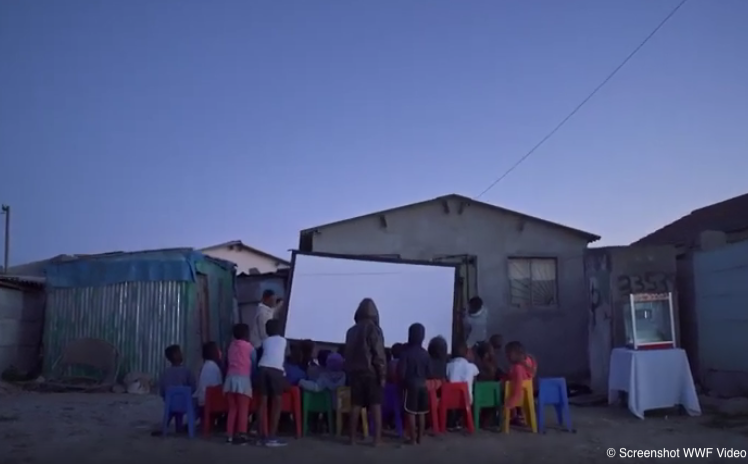 Aber auch dafür hat Sithela eine Lösung gefunden. Denn die Pop-Up Kinos von VUMA können mit einem mobilen Solarstrom-Kit betrieben werden, die vom WWF Südafrika bereitgestellt wurden. Dadurch können Filmvorführungen auch dann weiterlaufen, wenn der Strom mal wieder ausfällt. Das solarbetriebene mobile Mini-Kino verfügt über ein Solarmodul mit Batterie, sowie über einen Mini-Projektor und Lautsprecher und kann ganz einfach an einen Laptop oder ein Mobiltelefon angeschlossen werden.