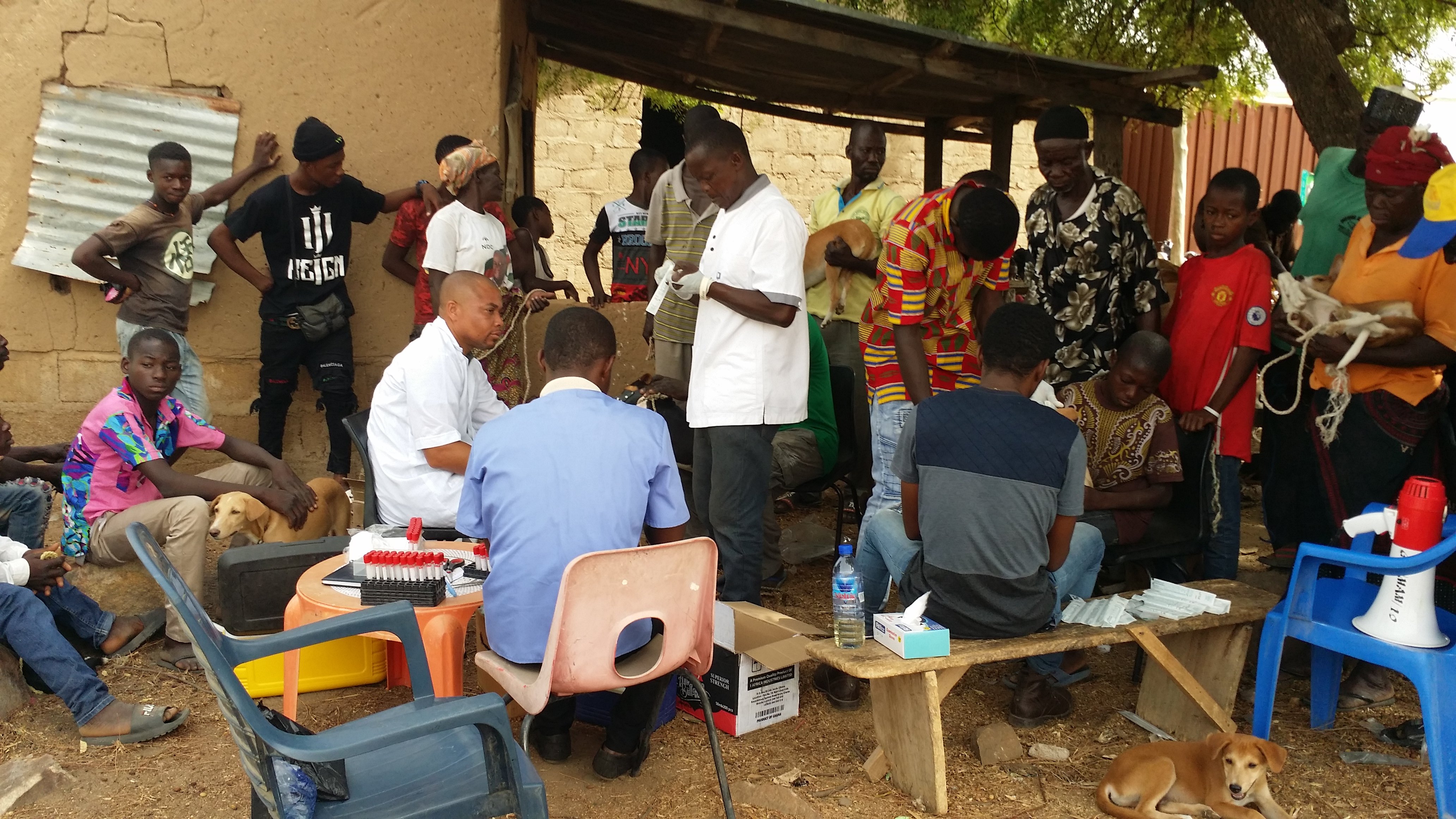 “In diesem Jahr haben wir genug Geld gesammelt, um rund 1.000 Hunde zu impfen – das meiste kommt von Freund*innen”, so Tasiame. Aber sie haben auch einen kleinen Aufruf gestartet und eine Funktion eingerichtet, mit der Menschen per SMS spenden können. Mit Mund-zu-Mund-Propaganda trommeln sie die Hundebesitzer*innen in den drei Dörfern Bongo, Zerko and Belungu in der Region Bogatanga zusammen, damit sie ihre Hunde rund um den World Rabies Day (Welt-Tollwut-Tag) am 28. September zur Impfung bringen. Dafür nutzen die Tierärzt*innen und Helfer*innen einen bekannten Ort im Dorf, den jede*r kennt.