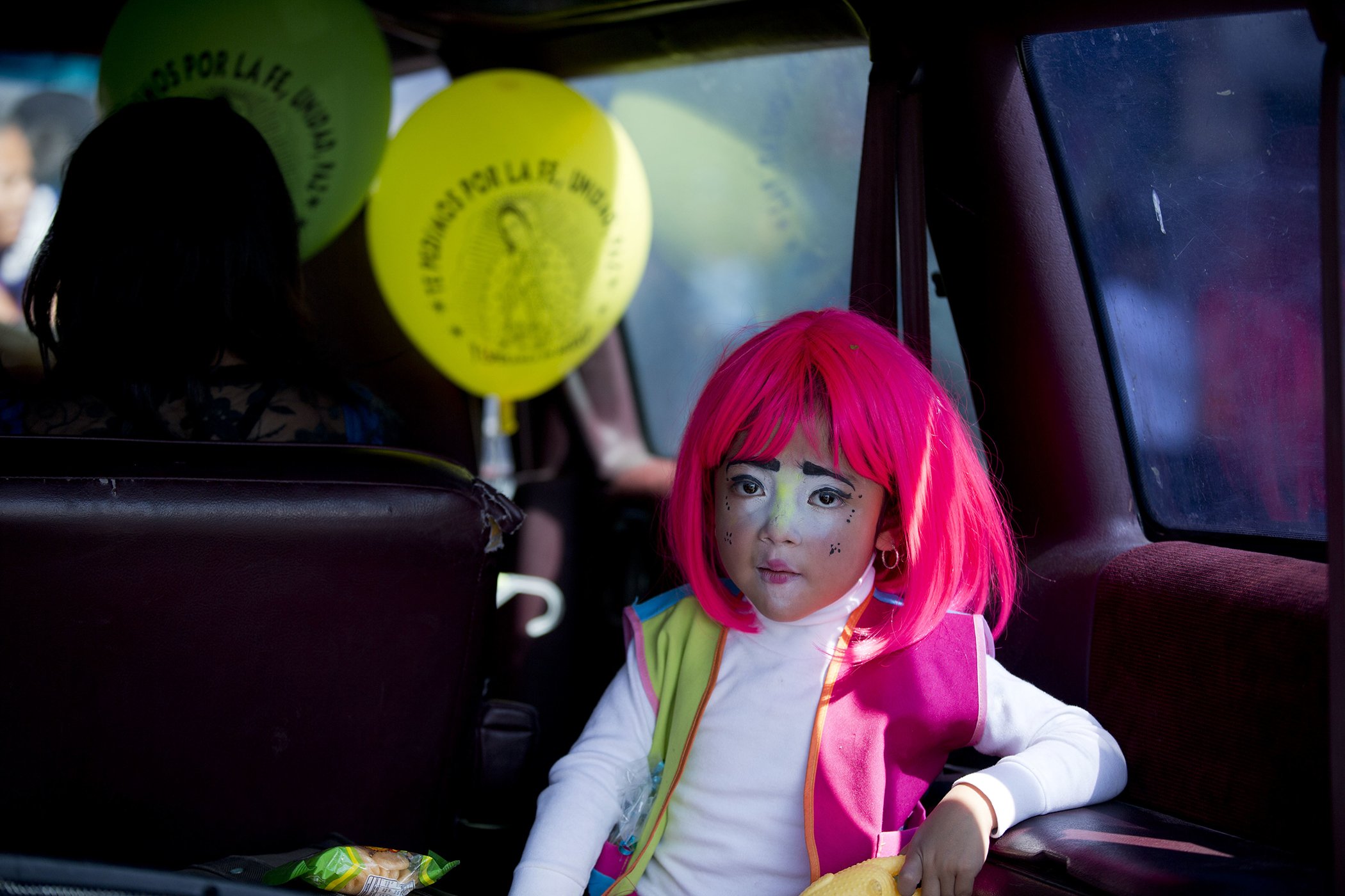 Eine junge Clownin ist im Dezember 2015 auf dem Rückweg von einem Besuch bei “Unsere Liebe Frau von Guadalupe”, einem Gnadenbild Marias. Hunderte Clownvereinigungen pilgern jährlich zur Basilika, um Mexikos Schutzpatronin die Ehre zu erweisen.