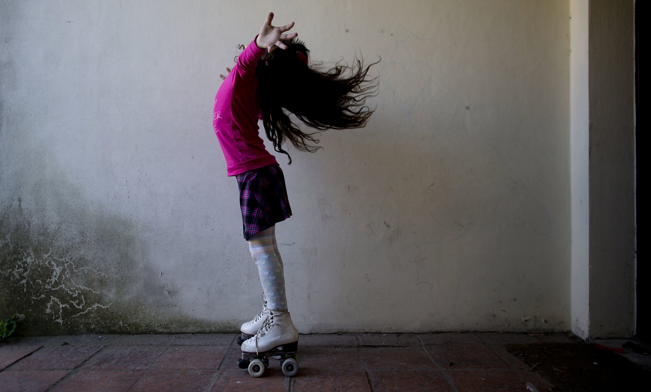Luana poses for photos on her roller skates at her home in Merlo, Argentina on Sept. 29, 2015. Luana says that when one of the girls asked her why she had a penis, a friend jumped in. "She's transsexual," the child explained, nonchalantly. That level of comfort is no doubt in part because Luana herself appears so at ease. In 2013, she became the youngest person to take advantage of a progressive Argentine law that allows people to identify their own gender for legal purposes.