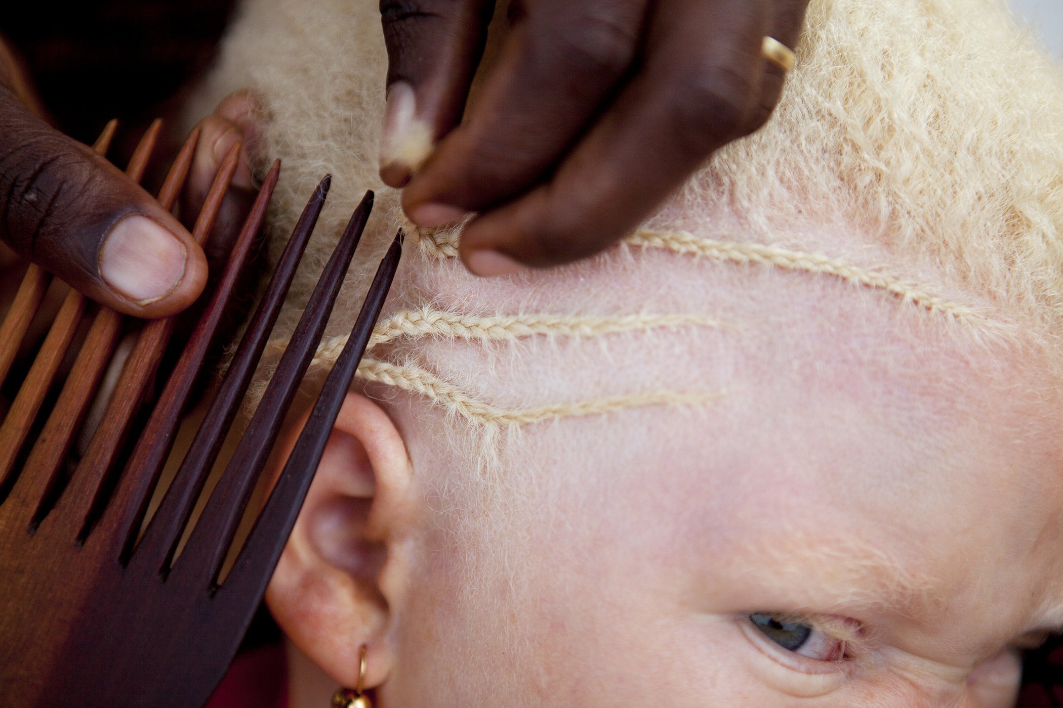 Dieser zärtliche Moment zwischen Janet Jotham und ihrer Tochter Lucia Jotham, 8, wurde am 27. August 2012 festgehalten. Er zeigt wie Janet ihrer Tochter im "Kabanga Protectorate Center", einer Schule für Kinder mit Behinderung, die Haare flechtet. Menschen mit Albinismus leiden an einer angeborenen Mangel an Pigmentierung in Haut, Haaren und Augen. Aufgrund mangelnder Aufklärung über die seltene genetische Erkrankung, werden Albinos in Afrika häufig gemieden und angegriffen.