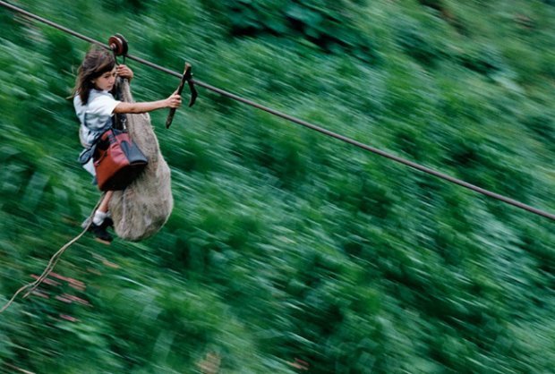 2) Kein Schulbus? In Kolumbien geht's auch per Seilrutsche