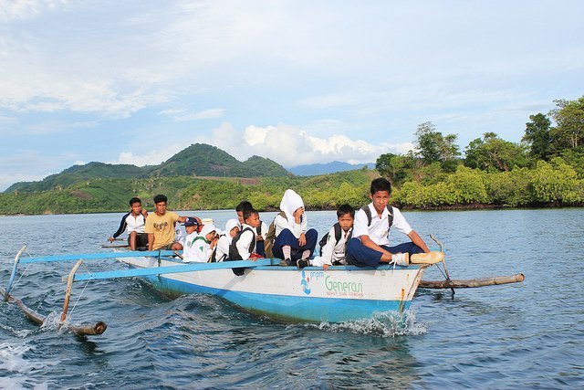 Im Vergleich zu dem Schwimmreifen auf den Philippinen grenzt das Boot hier fast schon an Luxus. Aber auch nur fast. Jeden Tag, bei Wind und Wetter und Regen und Kälte auf einem Boot zur Schule zu hocken klingt auch nicht unbedingt nach Spaß.