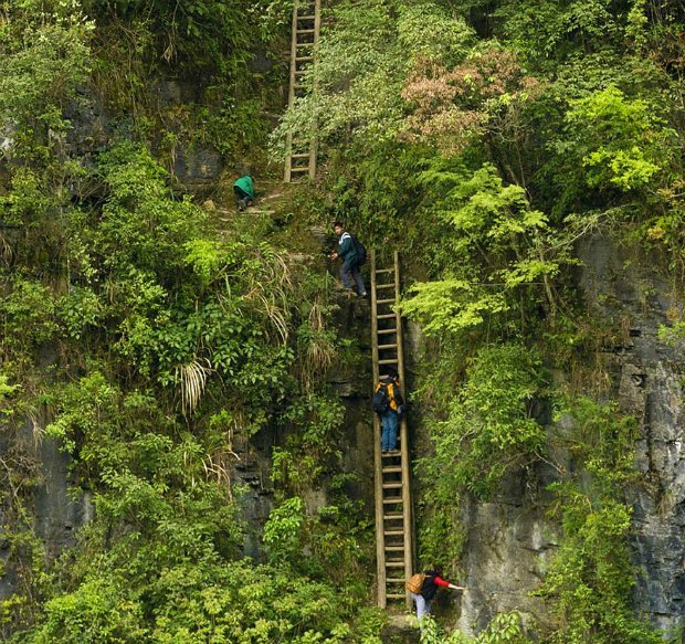 3) Diese entschlossenen Schulkinder erklimmen völlig neue Höhen auf ihrem Weg zur Schule