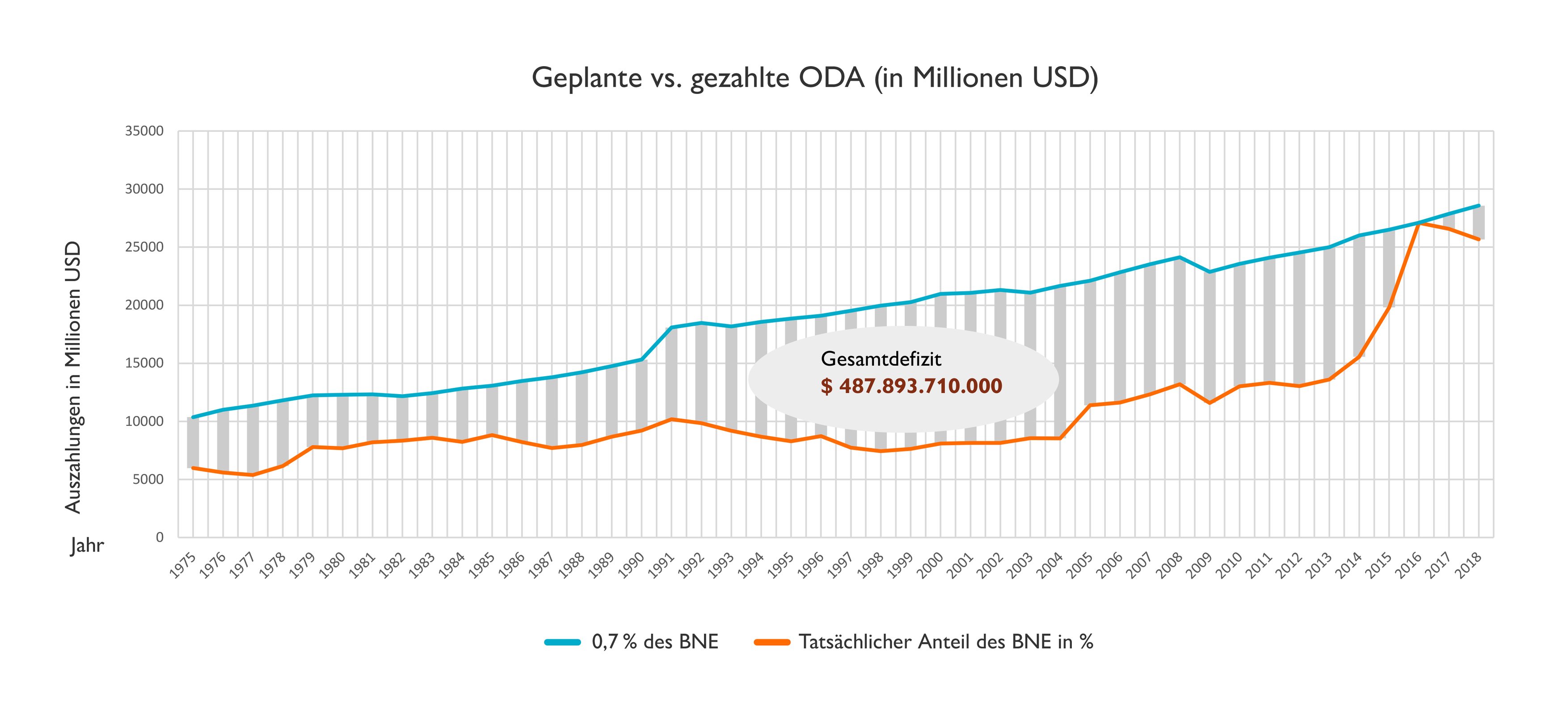 50 Jahre nach seinem Versprechen von New York hat Deutschland über 400 Milliarden Euro nicht investiert, die es für Entwicklungszusammenarbeit zugesagt hatte.