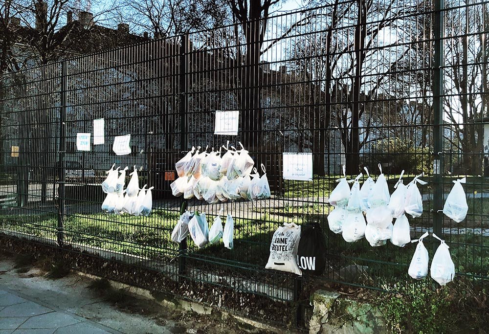 Die Idee kommt vermutlich aus Hamburg. Ich bin allerdings über den Aktivisten Kay Plonka darauf aufmerksam geworden. Kay arbeitet seit langem ehrenamtlich bei der Berliner Obdachlosenhilfe, für die auch ich bereits Spenden gesammelt und Pakete gepackt habe. Wegen der Ansteckungsgefahr und weil viele ehrenamtlich Helfende zur Risikogruppe gehören, mussten die meisten Ausgabestellen für Obdachlose während der Coronakrise schließen. Deshalb kamen wir gemeinsam mit anderen Helfer*innen auf die Idee, die Gabenzäune nach Berlin zu holen. Einige Telefonate, Geldsammelaktionen via Instagram sowie Supermarkt- und Drogeriebesuche später und der Gabenzaun wurde Realität!