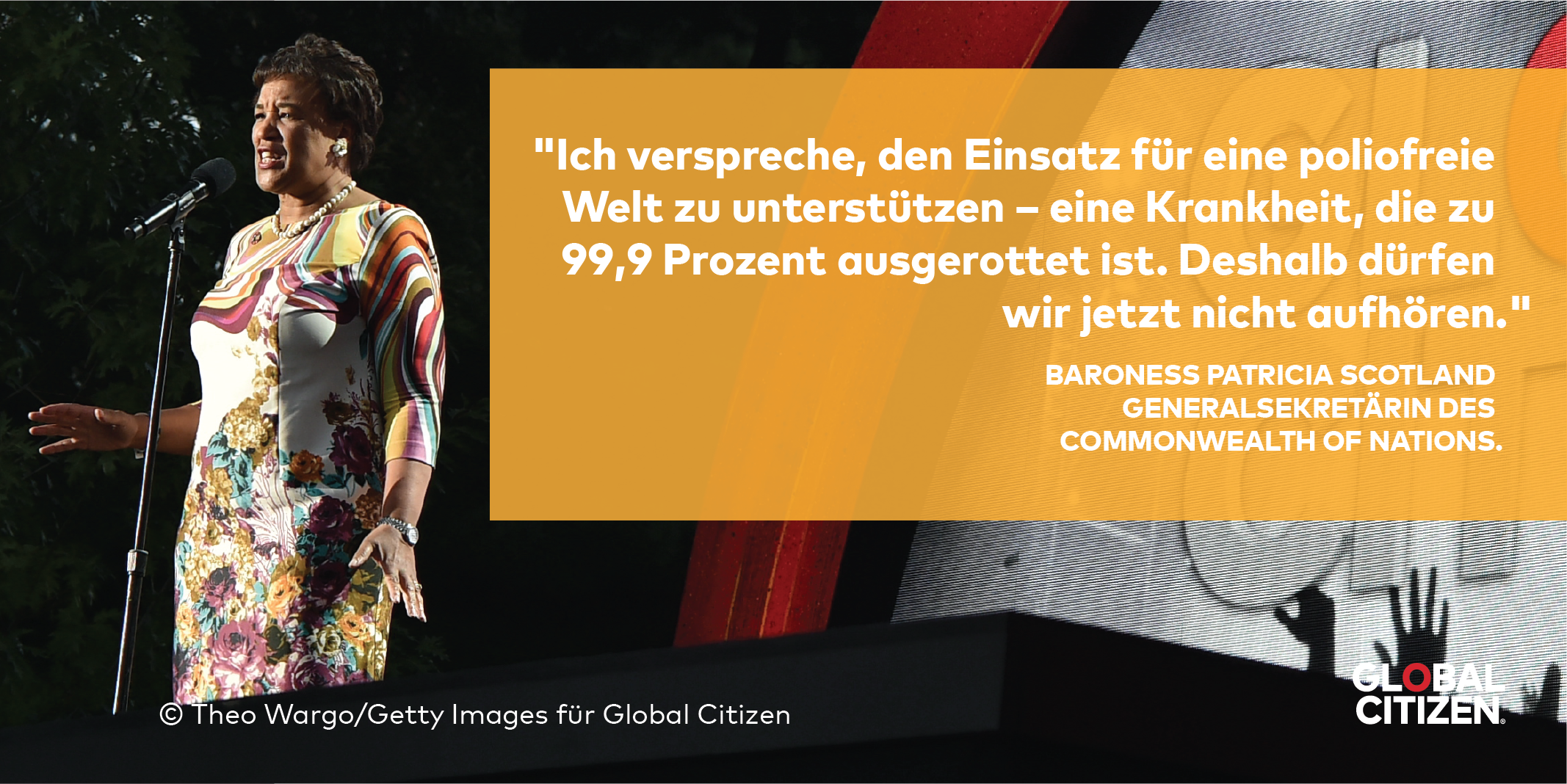 "Ich verspreche, den Einsatz für eine poliofreie Welt zu unterstützen – eine Krankheit, die zu 99,9 Prozent ausgerottet ist", erklärte Scotland. "Deshalb dürfen wir jetzt nicht aufhören."