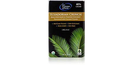 Coconut Secret ist eine magische Verschmelzung von Single-Origin-Schokoladen-Zutaten aus fairem Handel, gerösteter Kokosnuss und niedrig glykämischen Kokosnuss-Kristallen.