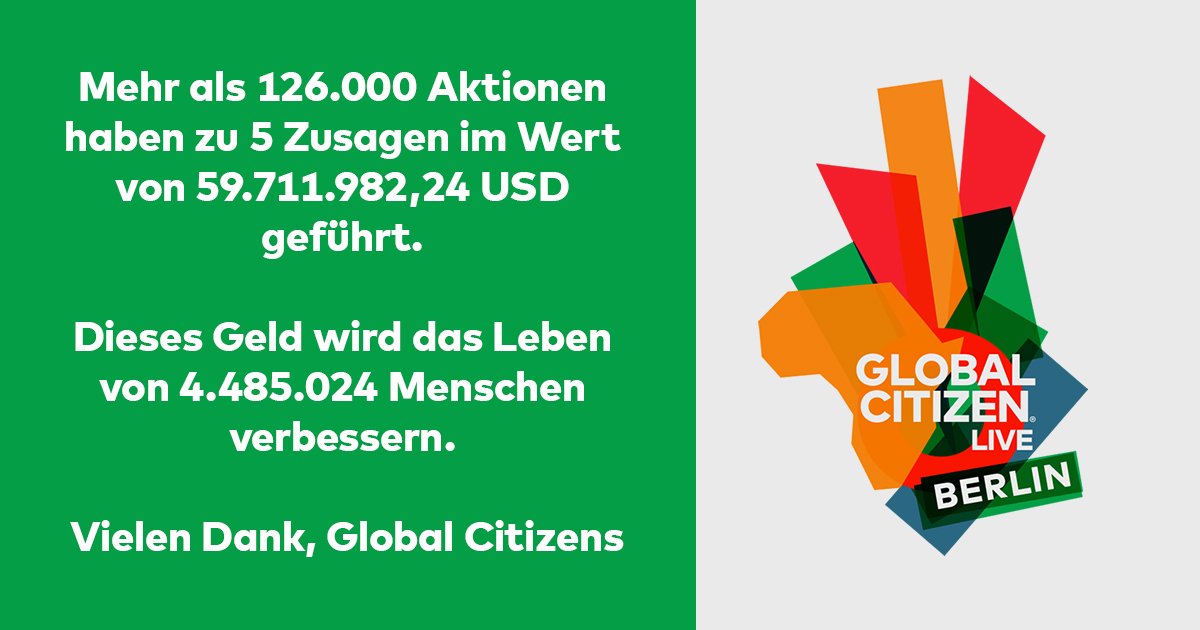 Ein großer Erfolg, an dem Global Citizens aus der ganzen Welt beteiligt waren. Denn insgesamt seid ihr über 163.000 Mal aktiv geworden und habt nicht locker gelassen. Und genau dieses unermüdliche Engagement von jedem einzelnen Global Citizen macht unsere Arbeit so besonders und lässt mich positiv in die Zukunft sehen. Denn mit euch allen an unserer Seite können wir die nächsten 10 Jahre nutzen, um die Global Goals zu erreichen und extreme Armut ein für alle Mal zu besiegen.