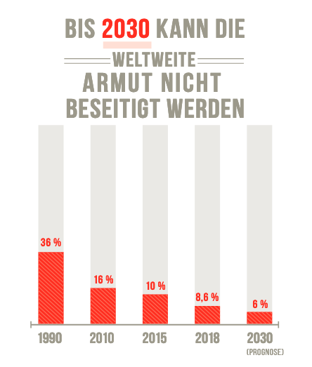 Die gute Nachricht: Extreme Armut nimmt weltweit weiterhin ab. Die schlechte Nachricht: 2030 wird es laut der Prognosen des aktuellen Nachhaltigkeitsberichts noch immer Menschen geben, die unter der Armutsgrenze leben müssen. Diese Menschen haben jeden Tag weniger als 1,90 USD zur Verfügung – und das, obwohl sie oft hart für ihr Geld arbeiten und Familien ernähren müssen.