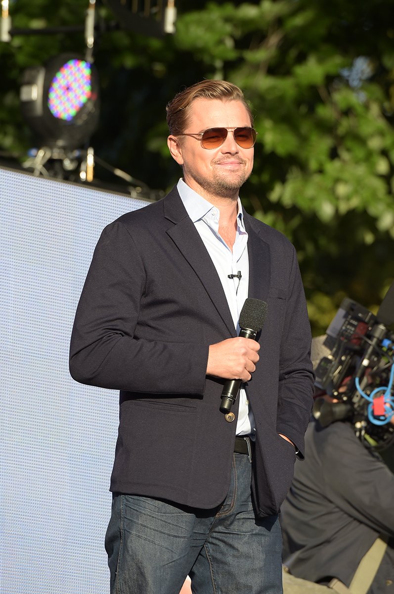 Leonardo DiCaprio, on the Global Citizen Festival stage in New York City, 2015.