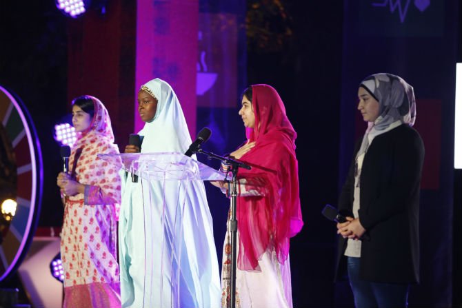 “I’m here standing with four other girls for a cause, for a basic human right — the right to go to school.”