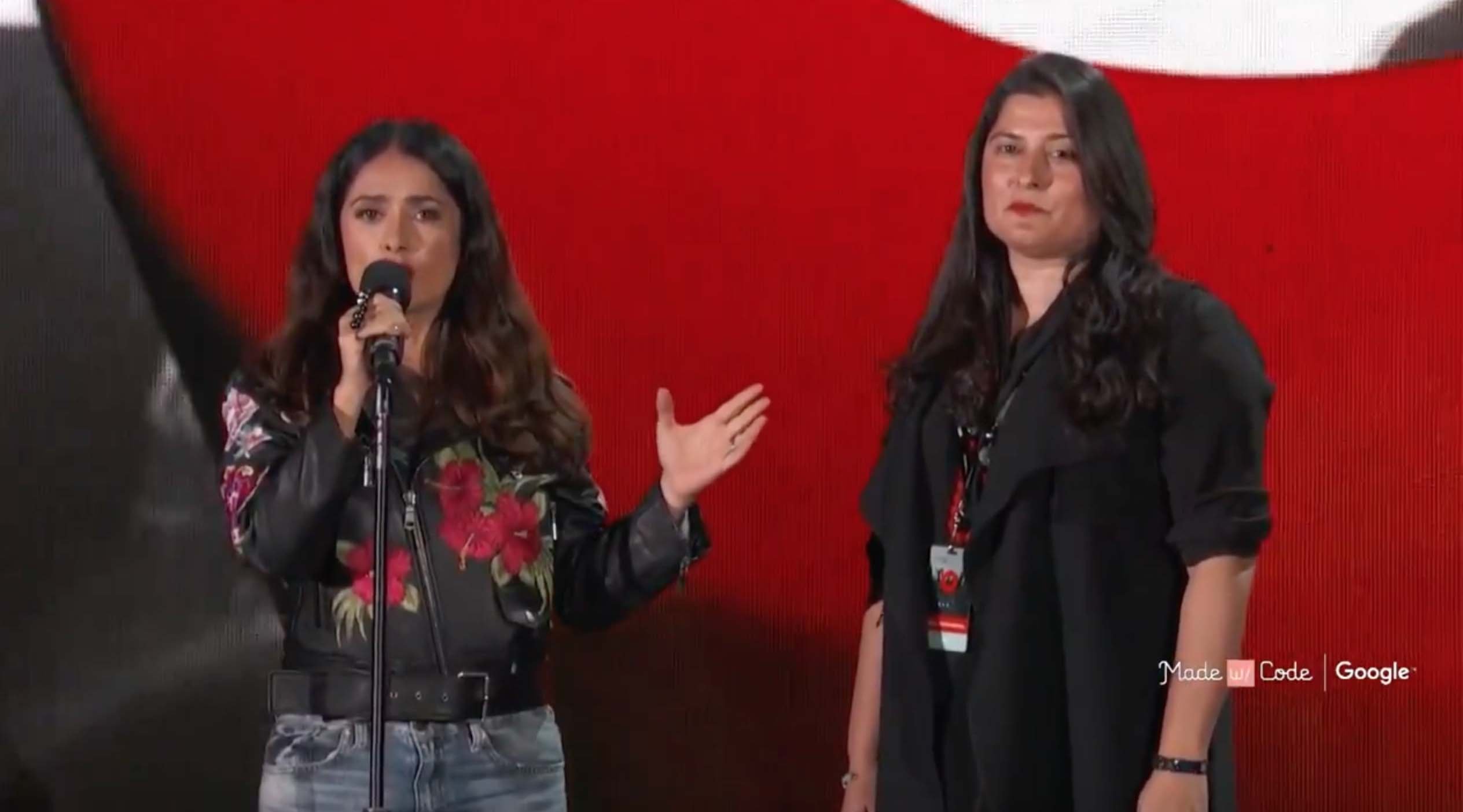 CHIME FOR CHANGE Co-Founder Salma Hayek Pinault and CHIME FOR CHANGE Advisory Board Member and Academy Award-winning filmmaker Sharmeen Obaid-Chinoy on stage at Global Citizen Festival 2016 campaigning to #LeveltheLaw.