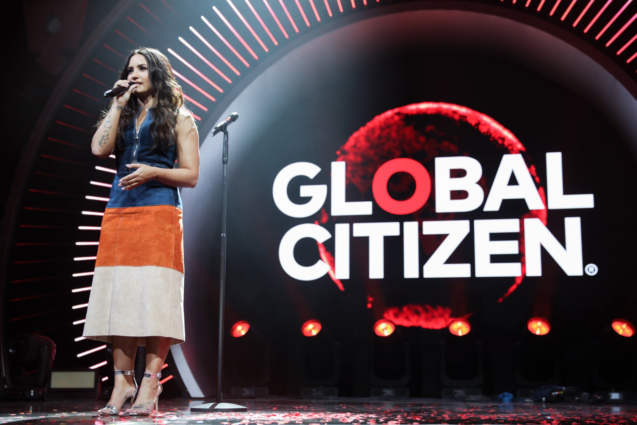 Demi Lovato, on stage at the Global Citizen Festival Hamburg, 2017.