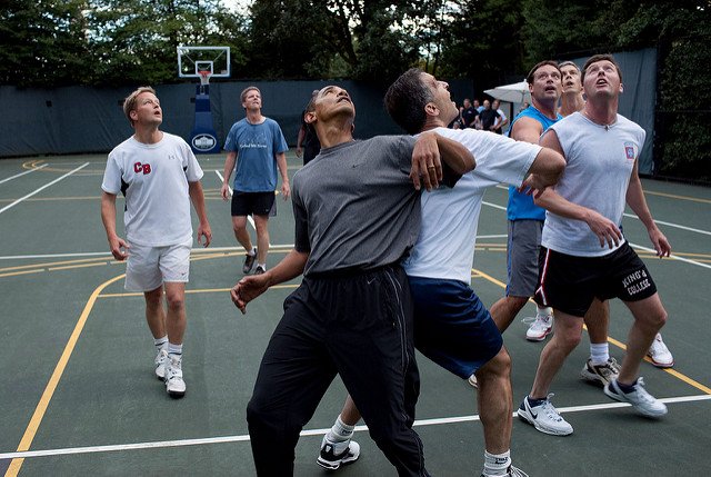 27) He would often play pick-up basketball games, like here with members of Congress and Cabinet secretaries in 2009.