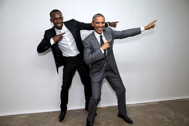 15) Obama poses with Usain Bolt backstage at a "Young Leaders of the Americas Initiative" in Kingston, Jamaica, in April 2015.
