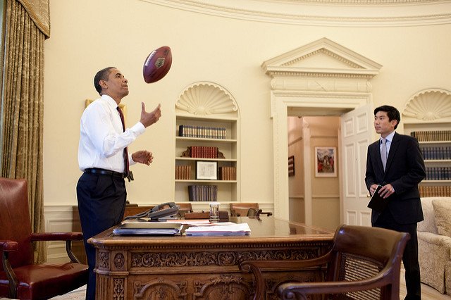 28) Sometimes, he'd bring the game into the Oval Office, including tossing a football in June 2009.