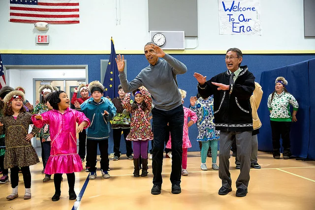 14) The president dances with school children in Dillingham, Alaska, in Sept. 2015.