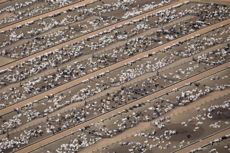 Beef production takes 28 times more land to produce than chicken or pork, and 160 times more land compared to staple crops like wheat or rice.