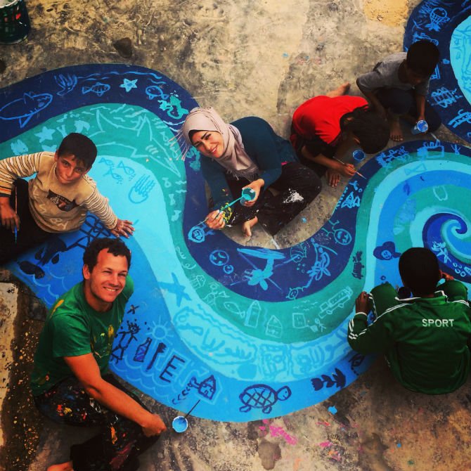 Artist Joel Artista travels to Syrian refugee camps and works to transform the environments through art.