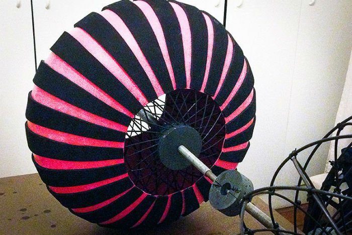 In its current form, the central steel shaft and interior wires are covered with hand-cut rubber—used tires are a seemingly endless source—but theoretically, a range of materials could be used. Local production, distribution, and maintenance in various developing countries could mean different materials depending on what’s readily available.