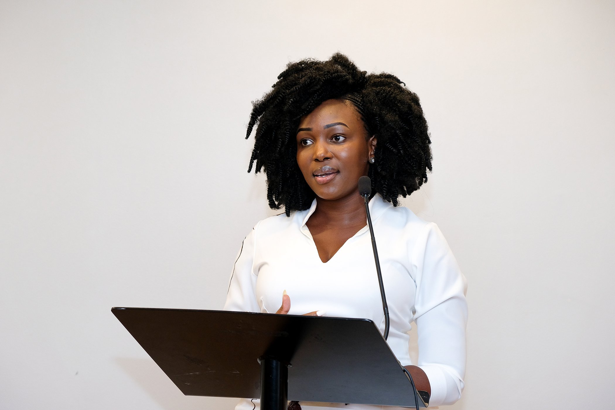 Charlot Magayi speaks at the Waislitz Global Citizen Award Reception in New York, September 2019.