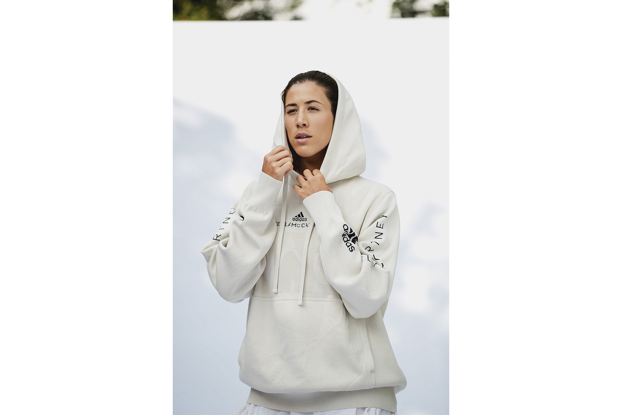 Spanish-Venezuelan tennis player Garbine Muguruza wears Adidas by Stella McCartney Infinite Hoodie.