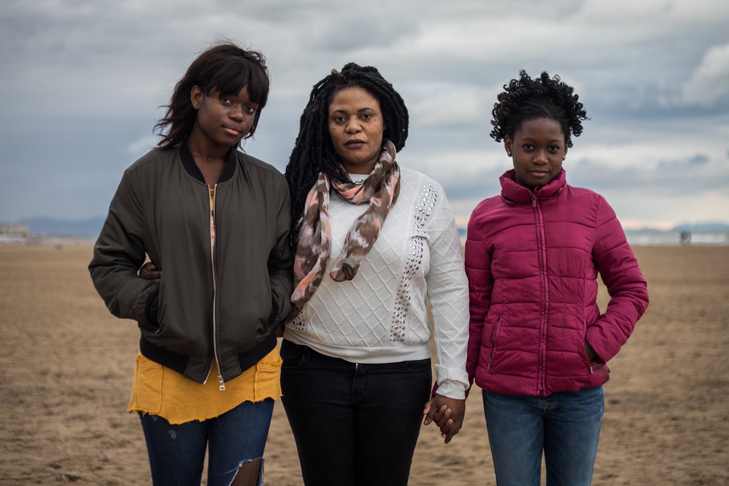 Vivian Ntih, 43, is photographed with her daughters Mari Mensah Damson, 15, and Elizabeth, 9, at the beach in Valencia. Vivian left Nigeria in 2000 and acme to Spain, where she now lives.