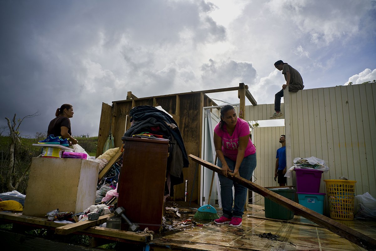 People try to recover their belongings and start rebuilding their house that was destroyed by Hurricane Maria, in Morovis, Puerto Rico, Saturday, Oct. 14, 2017.