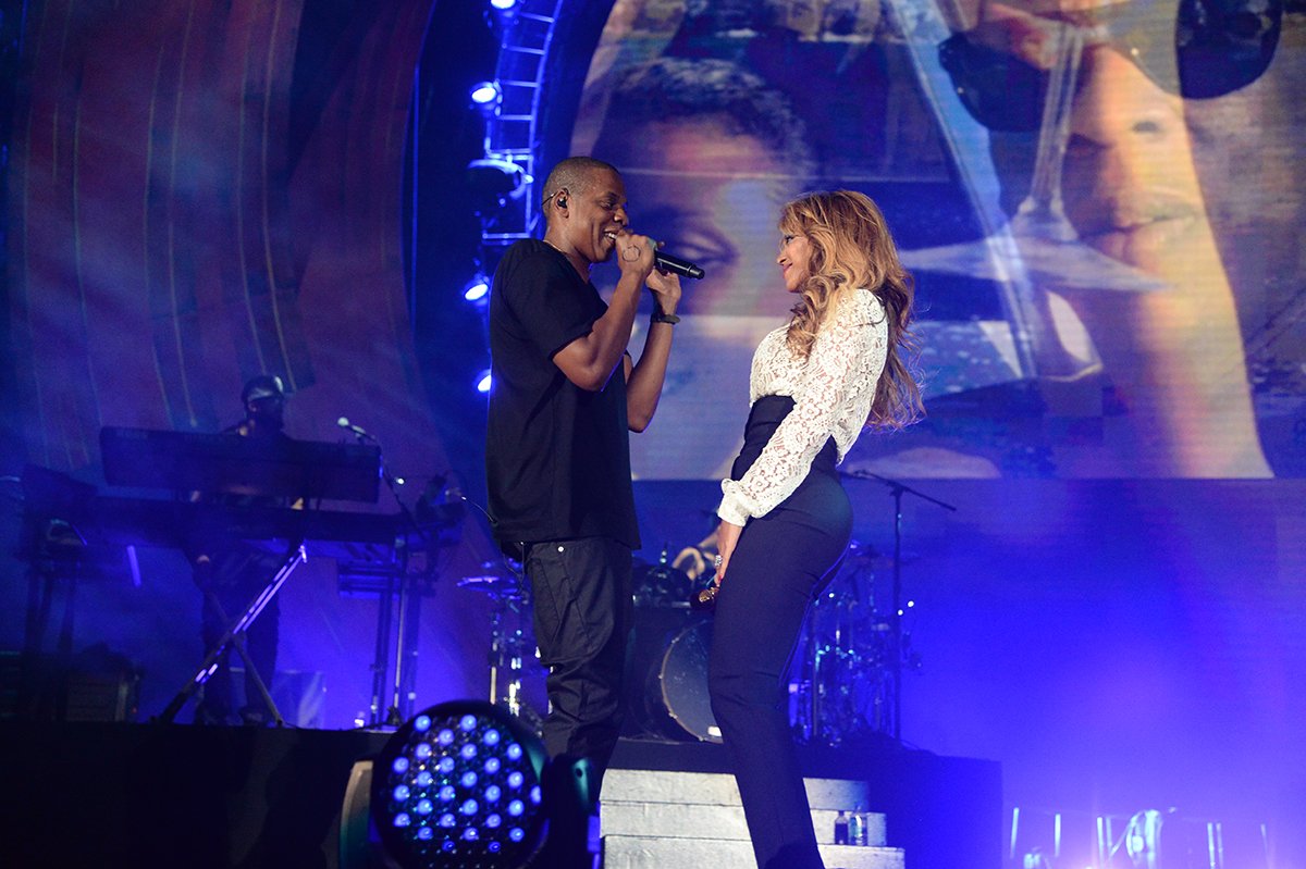 The biggest moment came unannounced when Beyoncé joined Jay-Z for his set onstage at the end of the night. Together they performed a duet of "Holy Grail", and the crowd screamed out and sang-along for their second duet, "Forever Young".