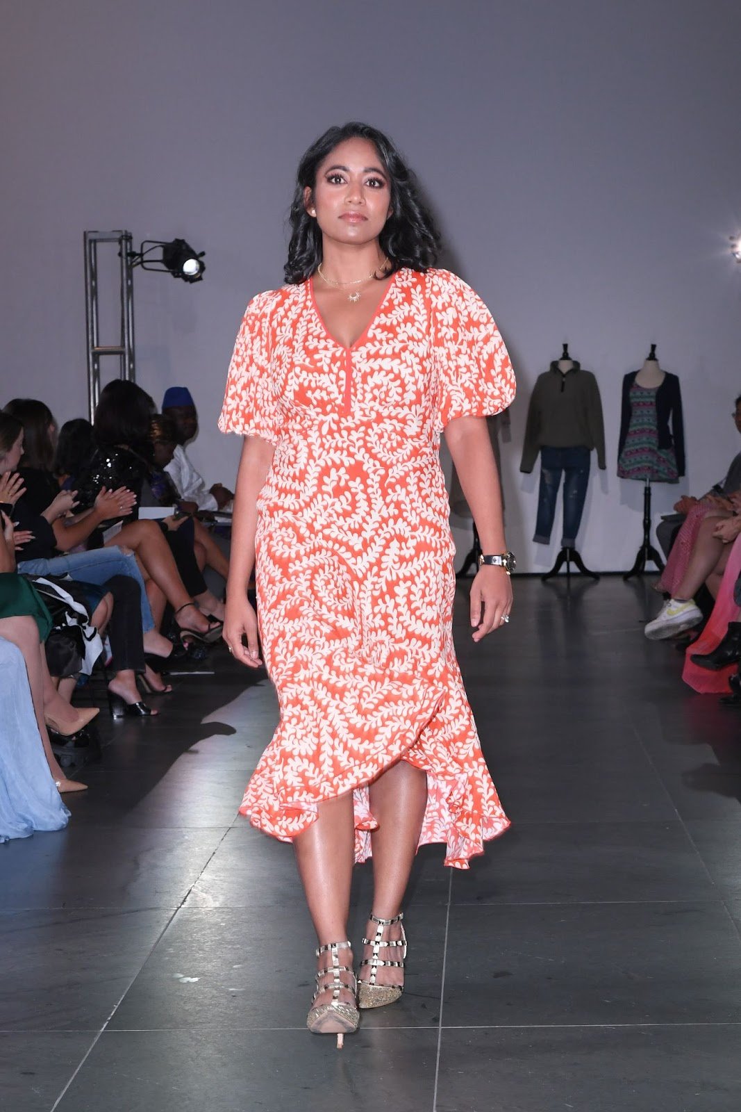 Sirisha Bandla walking in the 2022 Survivor Fashion Show.