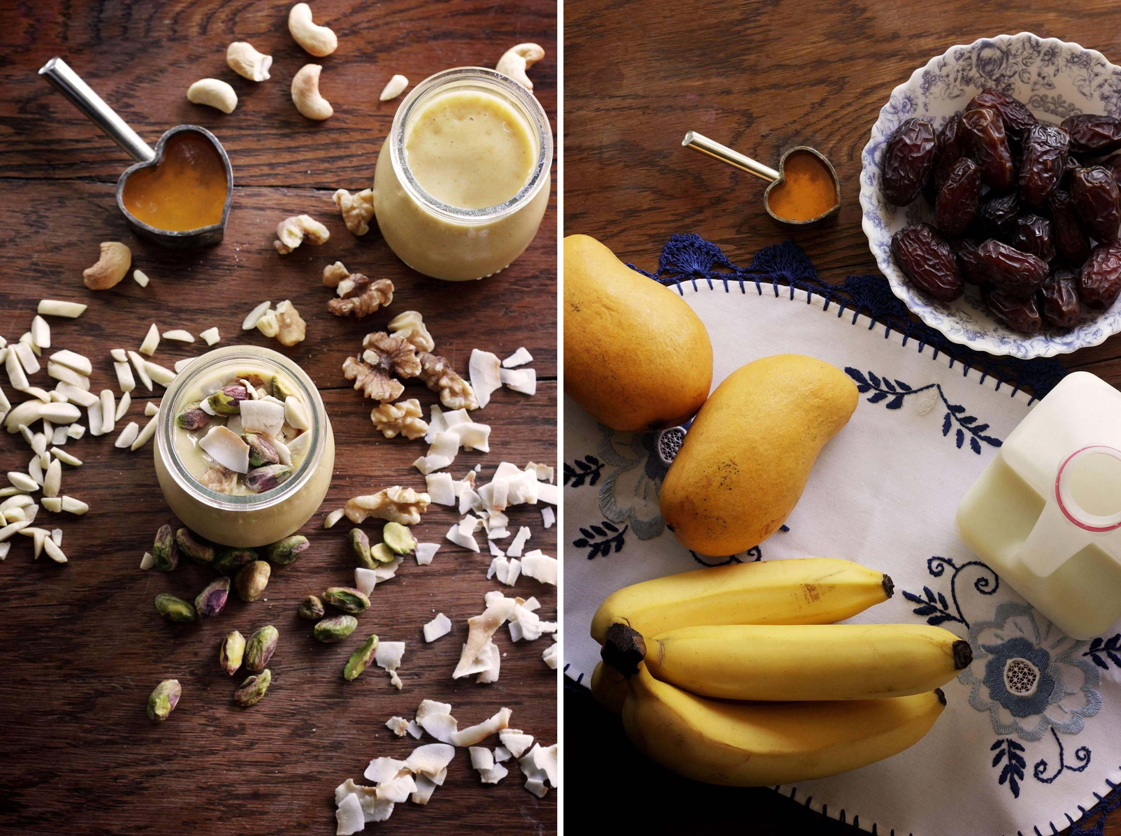 Dates grow throughout north Africa and western Asia, predominately in the Middle East. These sweet, wrinkly fruits nourish from head to toe; the included fiber and vitamins can improve eyesight, digestion, and bone strength. Picky eaters will delight: there's no reason to pop dates plain - take a tip from locals and enjoy them in Muhalla "crepes", fancy almond stuffed balls (perfect for a party), and honeyed mango smoothies (rumor has it this one helps love grow!). Since dates are often paired with pistachios or almonds, you'll get the added benefit of a protein boost with each of these recipes.