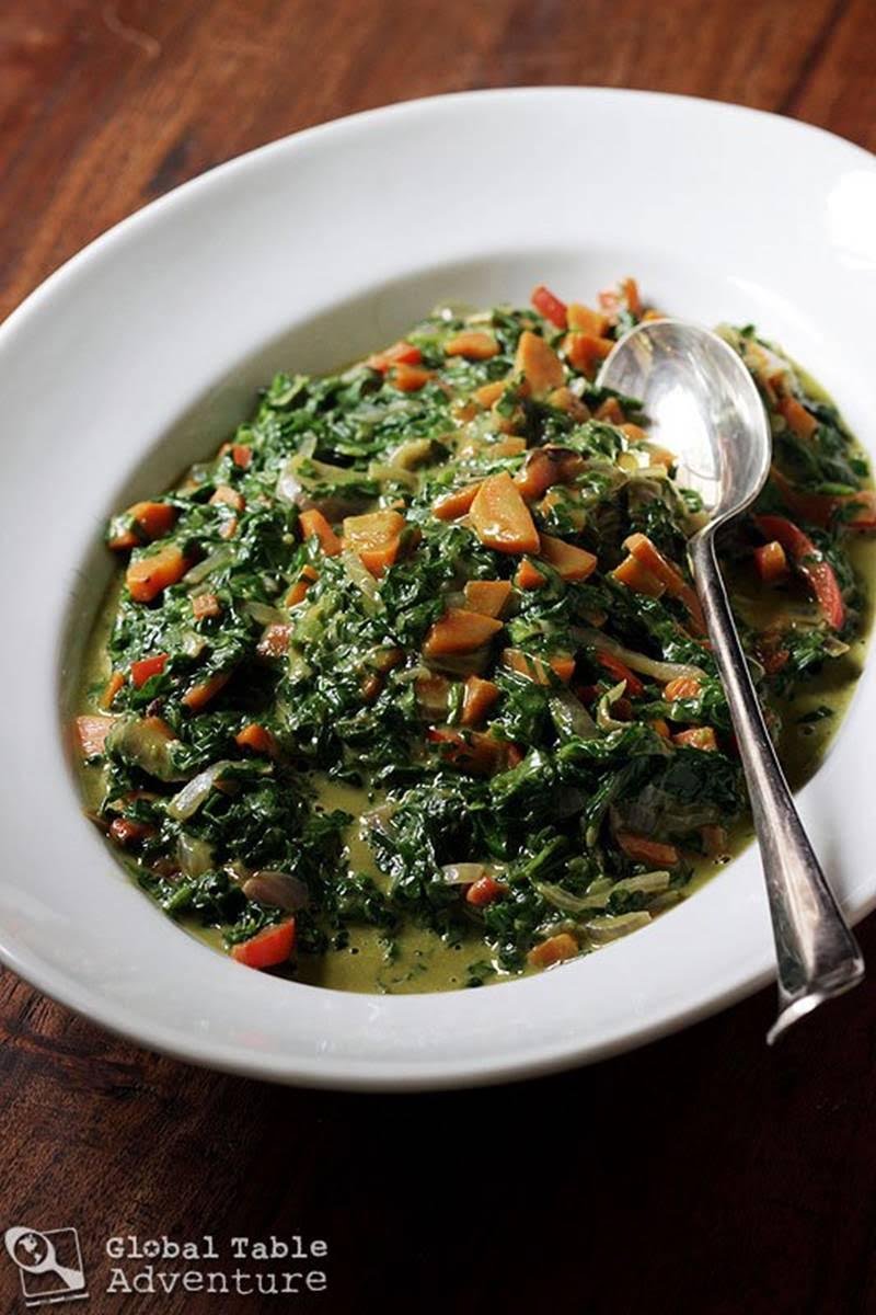 As for the spinach, Popeye would be so proud! There are so many ideas for how to cook this high-iron and calcium superfood in Africa, like stewed with peanuts and carrots, as with Tanzania's Kisamvu.