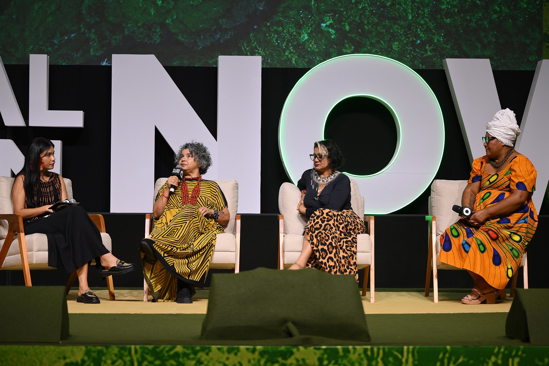 Priscila Tapajowara, President Midia Indigena, Angela Mendes, President of the Chico Mendes Committee, Claudelice Santos, Environmental and Human Rights Activist of Instituto Ze Claudio e Maria and Vanuza do Abacatal, Political Leader, Human Rights advocate e Coordinator of Racial Equality Policies in Ananideua attend the Global Citizen NOW: Amazonia on July 24, 2025 in Belem, Brazil.