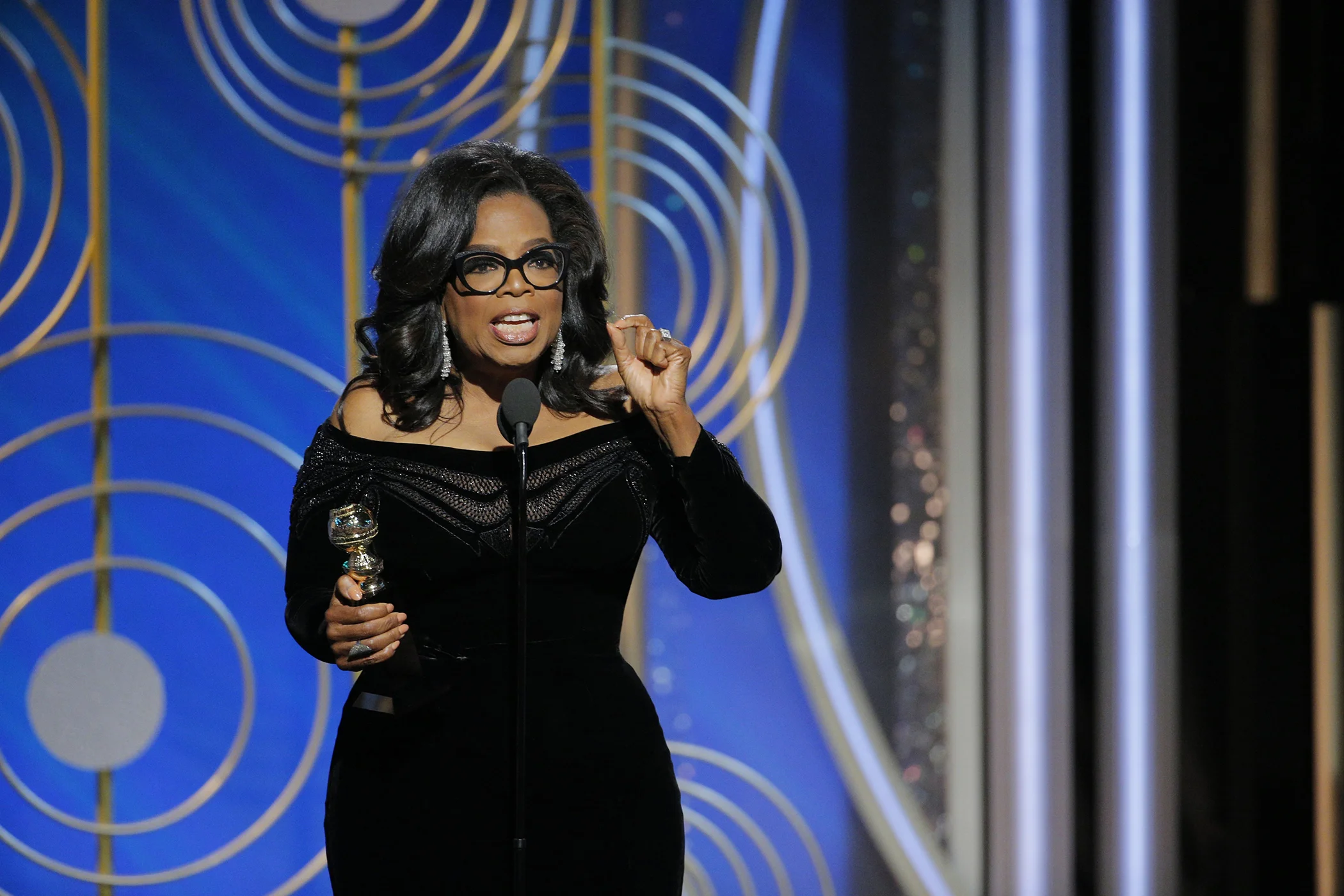 This image released by NBC shows Oprah Winfrey accepting the Cecil B. DeMille Award at the 75th Annual Golden Globe Awards in Beverly Hills, Calif., on Jan. 7, 2018.
