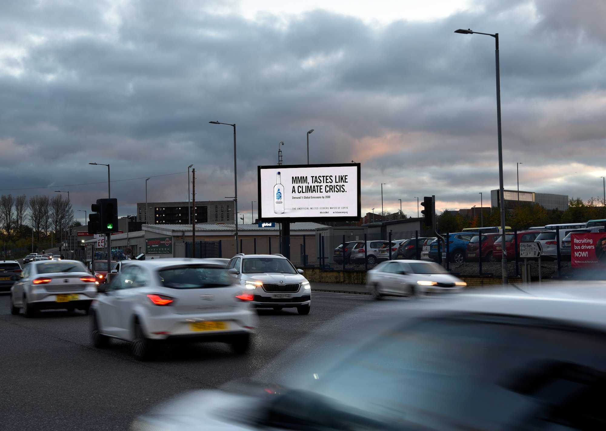 An Arctic Basecamp billboard in Glasgow ahead of COP26 in 2021.