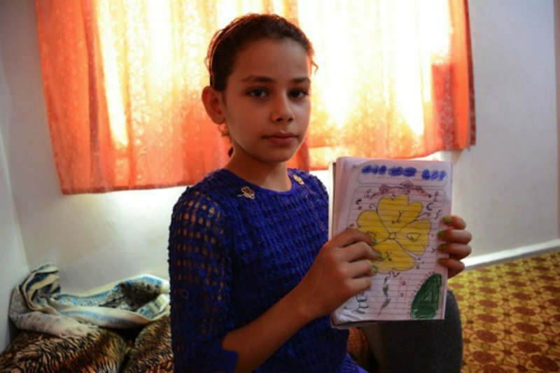 Ghozlan, 9, was displaced with her family in Syria for one year before coming to Jordan in October 2012. The family spent two months in Zaa’tari refugee camp but was able to receive an official “bailout” after several family members encountered health problems including Ghozlan, who suffered from hepatitis. They moved to Amman, where Ghozlan spent another year out of school, working to provide for her family. Last year, she was able to return to her studies, when she participated in CARE’s cash for education pilot program.