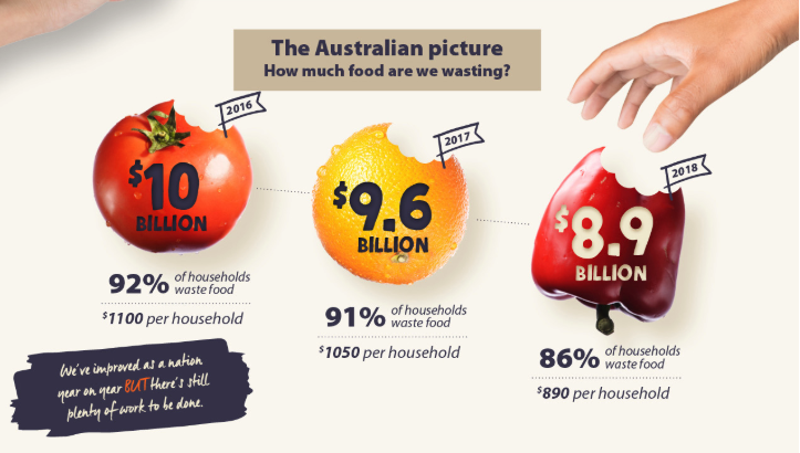 A report released Friday disclosed each Australian household tossed an average $890 worth of food in the garbage in 2018, racking up an overall annual waste bill of $8.9 billion. With each person binning nearly 300 kilograms of food a year, Australia still sits in fourth position on the global food wastage rank.