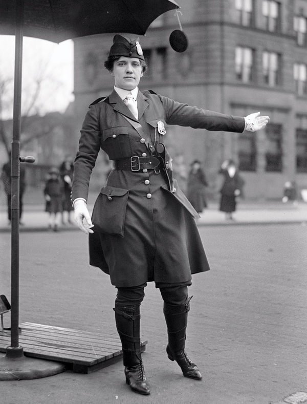 This photograph, taken in 1918, shows America’s first female traffic officer, Leola N. King, paving the way for diversity in the police force.
