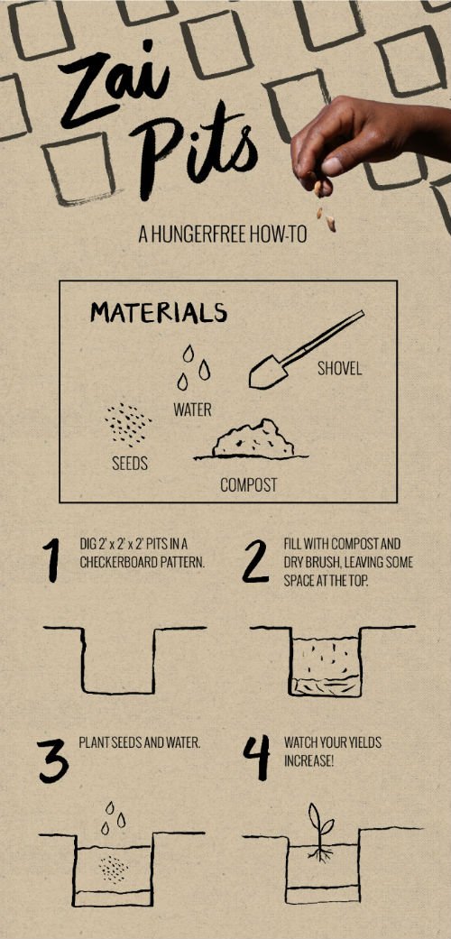 Now, rains are intermittent and unpredictable. But with zai pits, it’s easier to be sure that food will grow. In fact, the technique has doubled the crop production for the community.