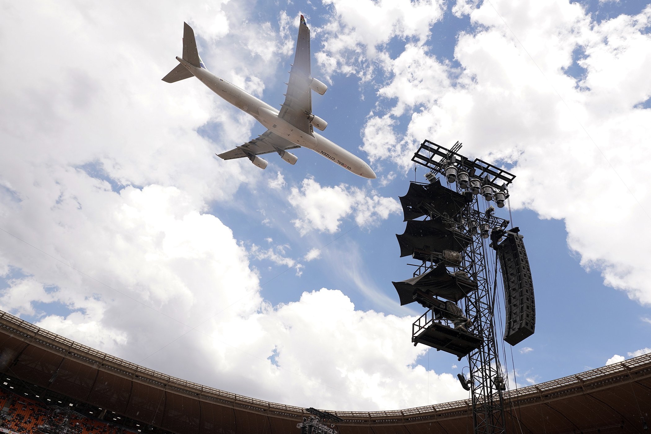The Global Citizen plane does a flyover over FNB Stadium during the Global Citizen Festival: Mandela 100 at FNB Stadium on December 2, 2018 in Johannesburg, South Africa.
