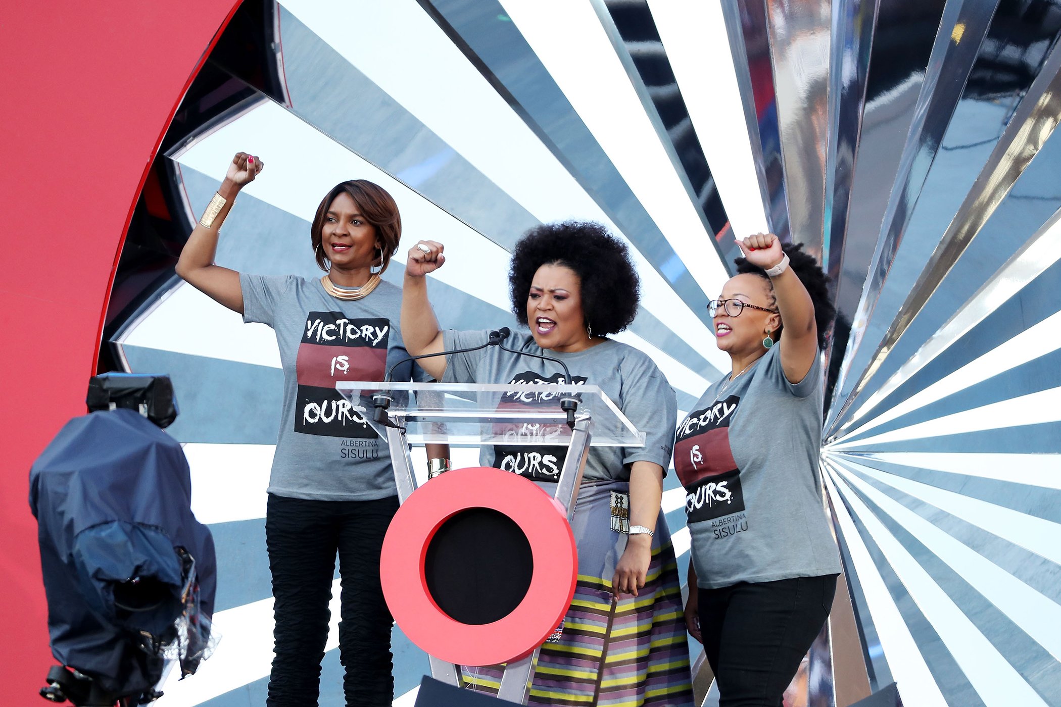 Tumi Sisulu (C) speaks onstage during the Global Citizen Festival: Mandela 100 at FNB Stadium on December 2, 2018 in Johannesburg, South Africa.