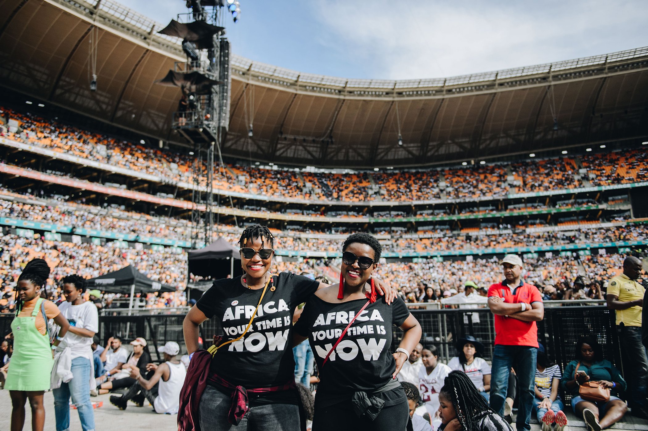 Guests in the audience during the Global Citizen Festival: Mandela 100 at FNB Stadium on December 2, 2018 in Johannesburg, South Africa.