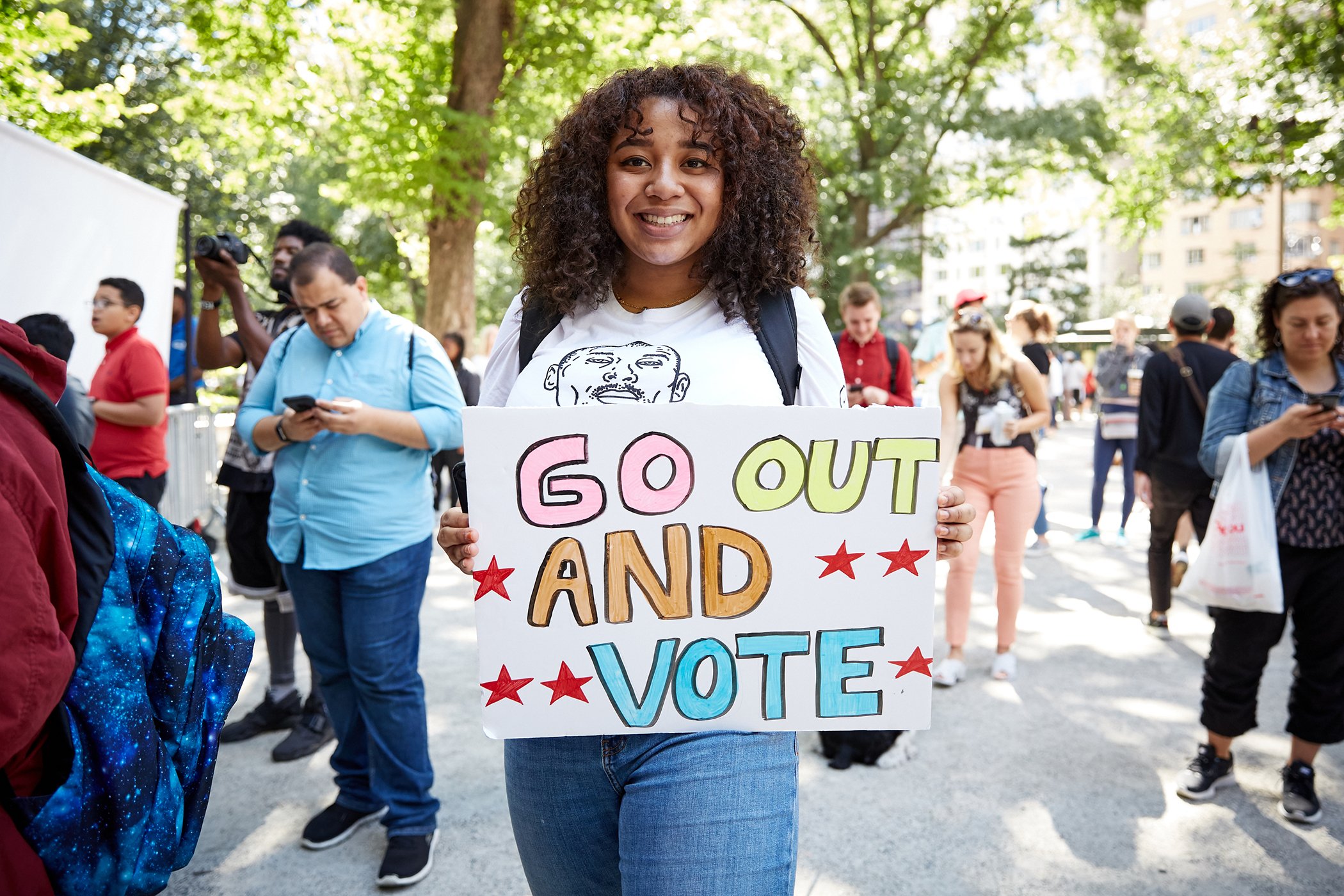 Attendees listen to the speakers at the 'Your Vote is Your Voice!' rally in Central Park.