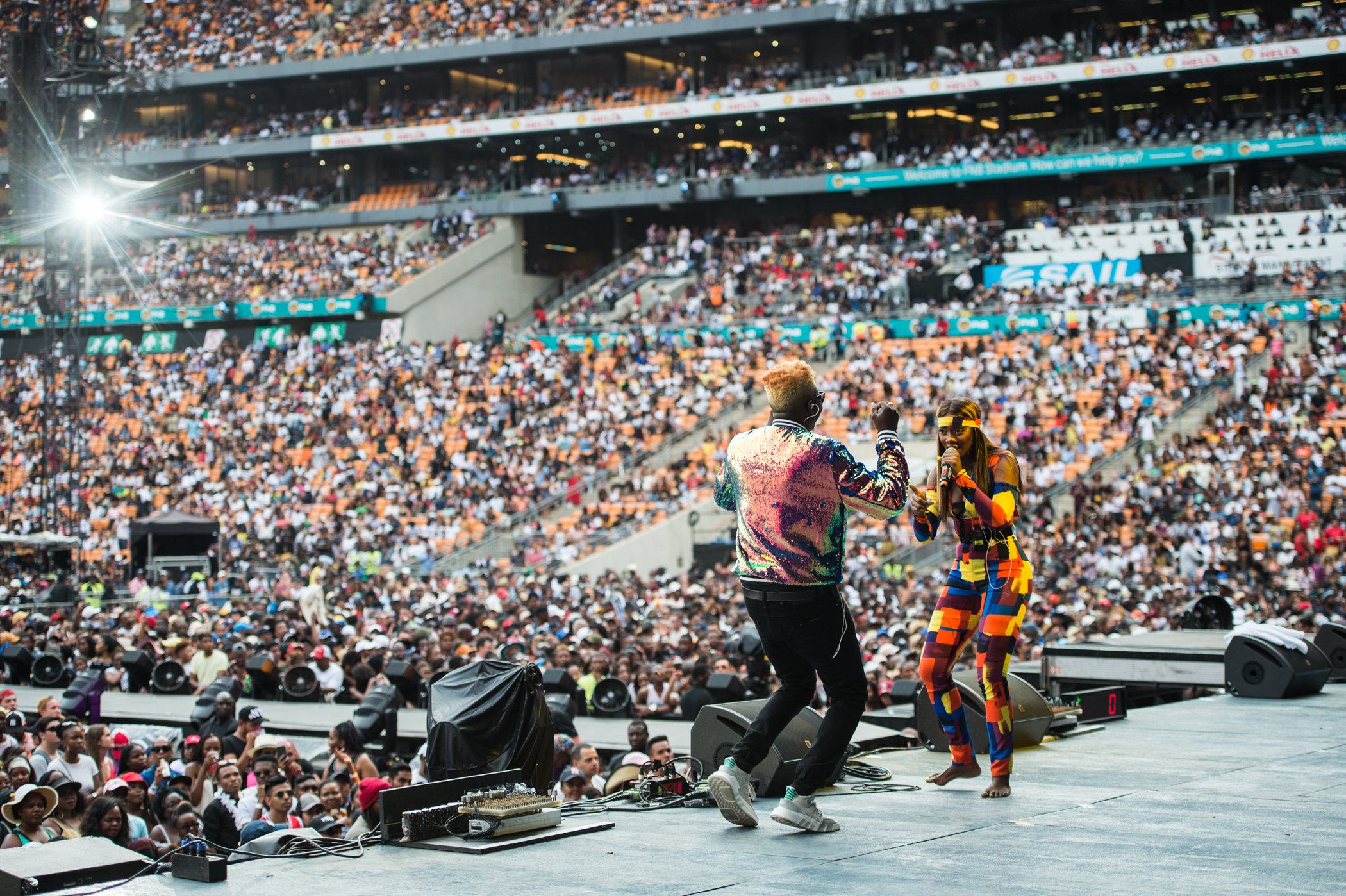 Jay Breeze and Tiwa Savage perform during the Global Citizen Festival: Mandela 100 at FNB Stadium on December 2, 2018 in Johannesburg, South Africa.