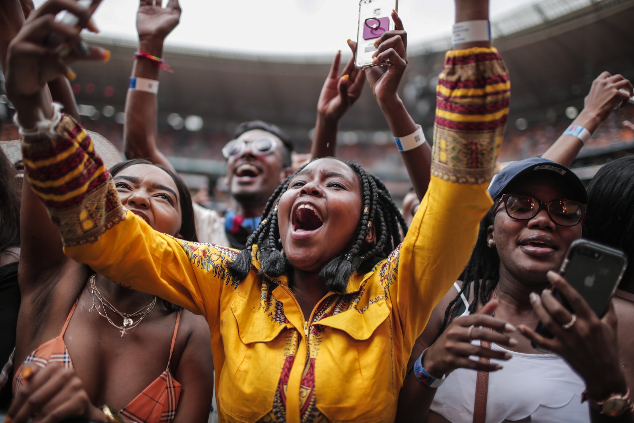 Attendees dance in the audience during the Global Citizen Festival: Mandela 100 at FNB Stadium on December 2, 2018 in Johannesburg, South Africa.