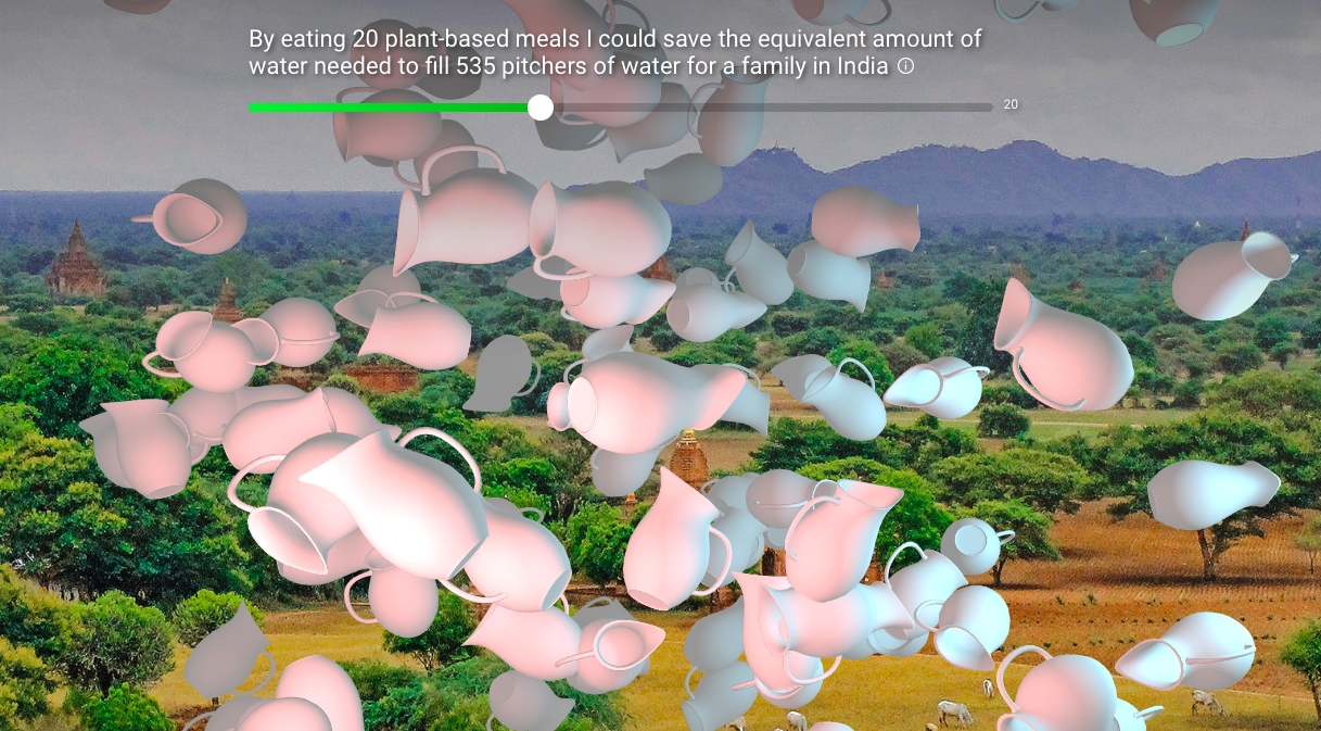 For example, eating nine plant-based meals is equivalent to having 14 trees remove harmful chemicals from the atmosphere for a month, according to the site.